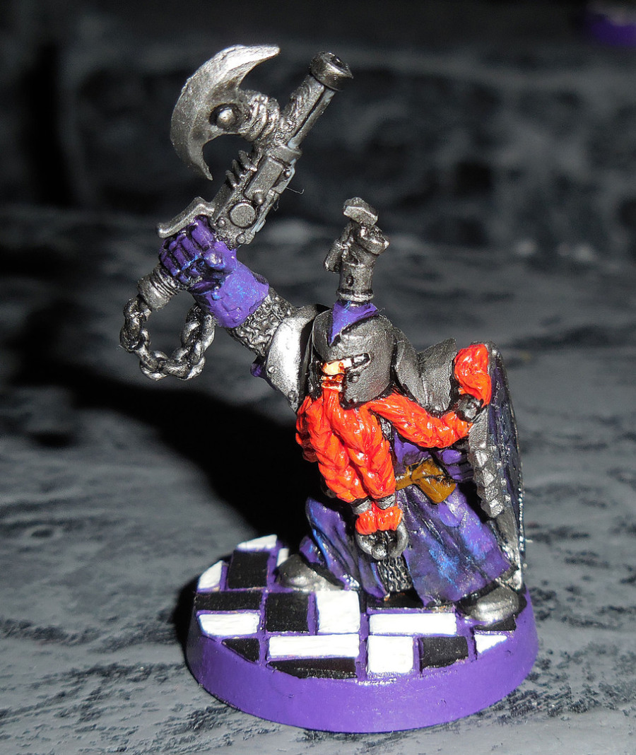 Als Basegestaltung dienen wie bei vielen anderen Celtos-Fraktionen kleine Kacheln, die mühsam (gequälte Betonung!) aus Kellogg's Frühstücksflocken-Packungen geschnitten wurden und dann einzeln mit einer Pinzette auf die Bases geklebt wurden. Danach wurden die Kacheln schwarz und weiß, die Fugen wieder mit Violett gestaltet.