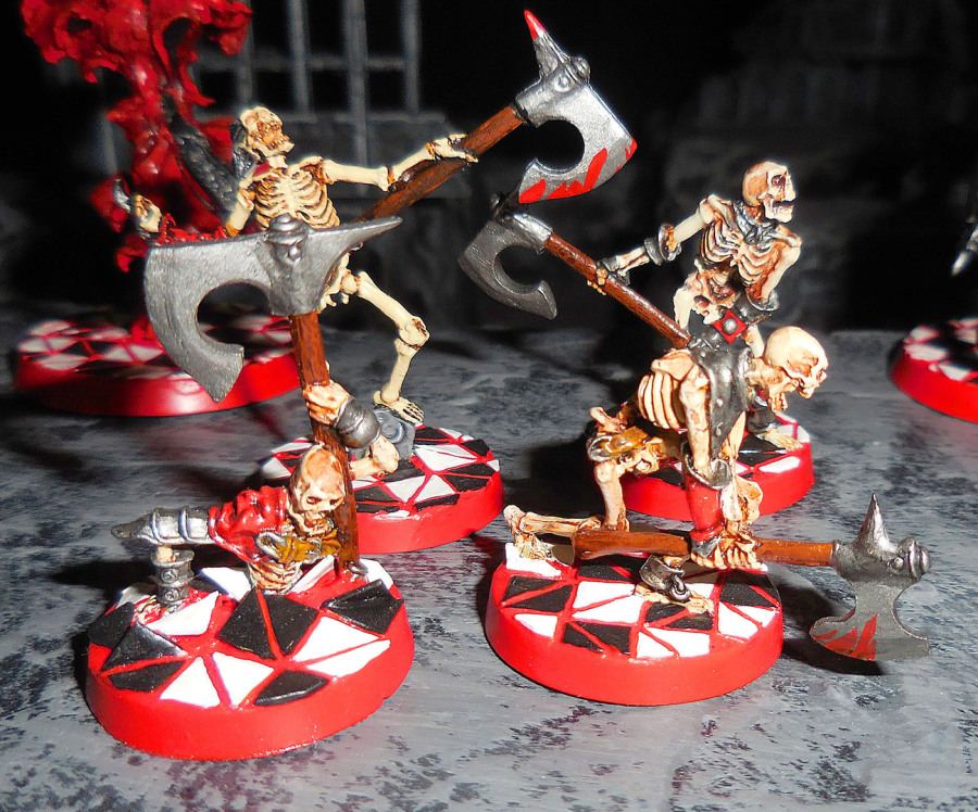 Als einfaches Fußvolk für eine ordentliche Streitmacht der Untoten braucht man natürlich Skelette. Diese kommen, wie eben alles von Confrontation, recht bewegt daher, soll heißen, in ausdrucksstarken, doch eher ungewöhnlichen Posen. Eines entsteigt gerade dem Erdboden, was in diesem Fall natürlich heißt, dass es dabei die aufwändige Kachelung kaputt macht, der dämonische Innenarchitekt wird sicherlich durchdrehen.