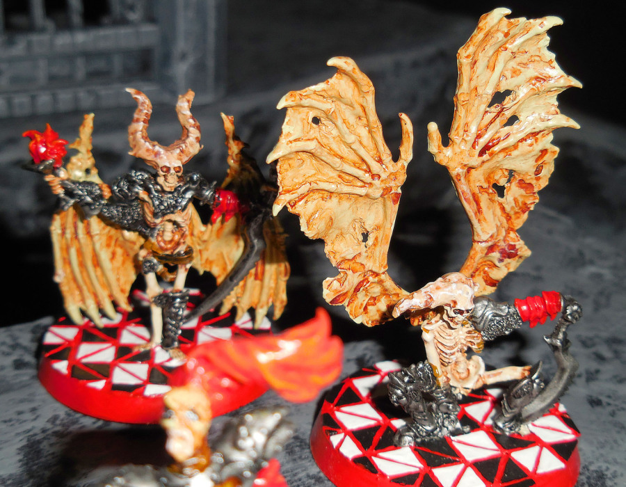 Nachdem wir Infanterie haben, braucht es Luftunterstützung. Dazu dient ein Paar Todesengel. Im Prinzip sind das aber auch nur Skelette mit etwas Hörnern und eben Flügeln. Besonders die etwas kauernde Figur kommt recht furchteinflößend daher. Untote Engel gibt es gar nicht so häufig und somit sind diese beiden echte Hingucker.