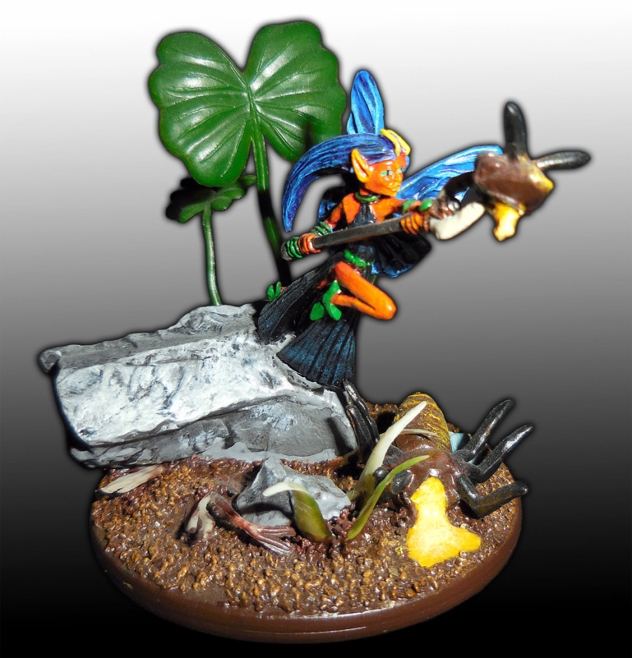 Weiterhin sollte auf die Bösartigkeit der Feen hingewiesen werden. Für den Chef des Trupps wurde eine andere Fee "geopfert" und hingeschlachtet auf das Base platziert. Diese Art und Weise lässt sich jedoch nicht massentauglich umsetzen. Somit müssen die anderen was anderes hinschlachten. Nachdem es aus Maßstabsgründen sowieso auf dem Base ist, warum nicht ein Insekt.