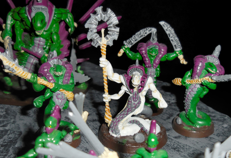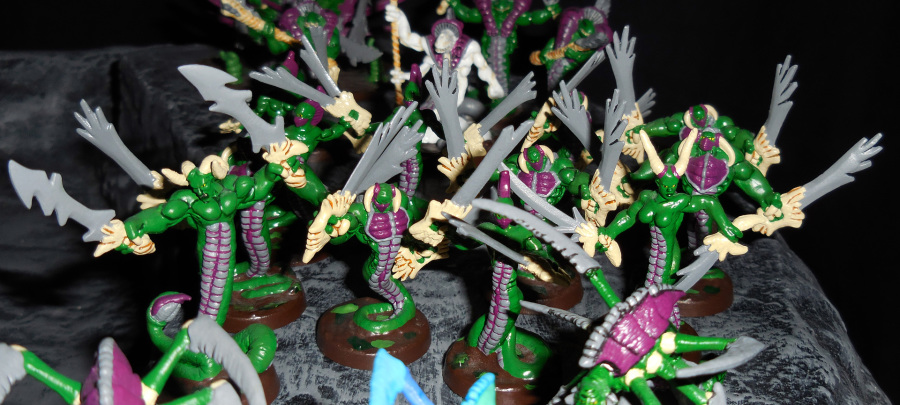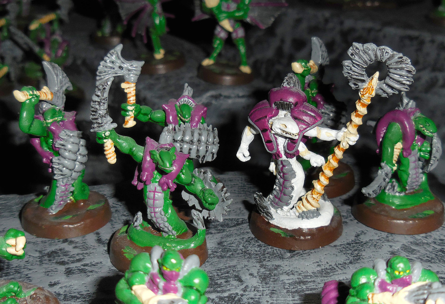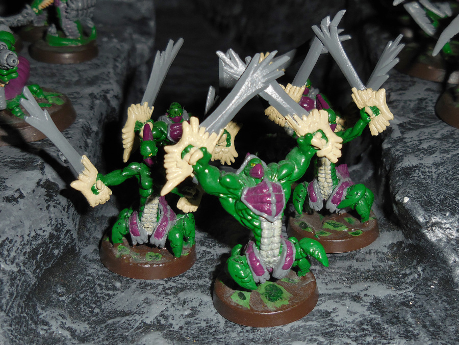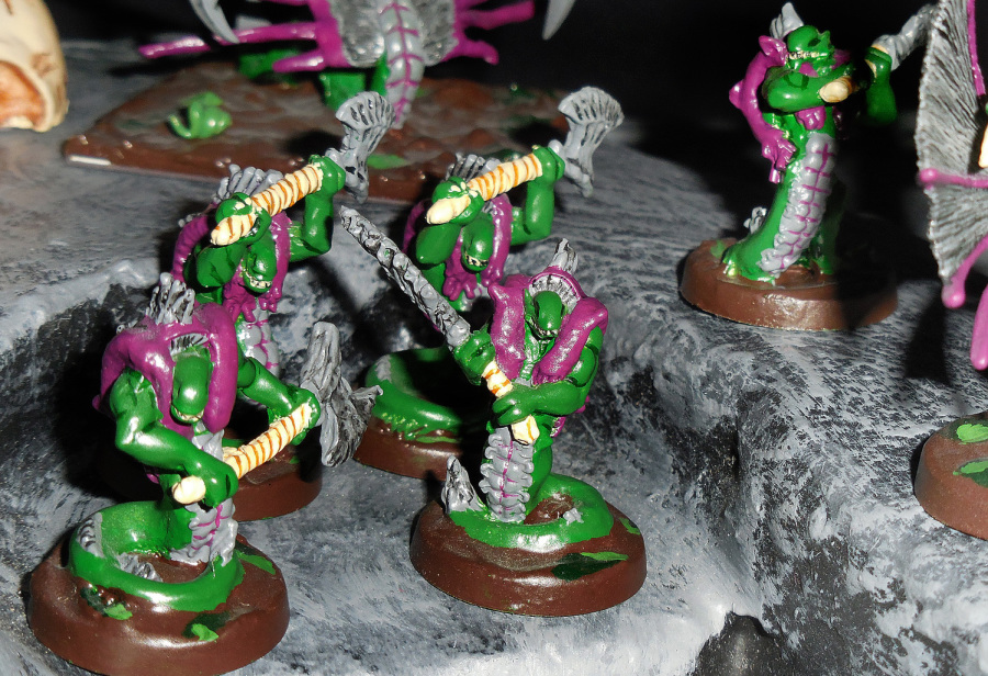 Das Thema zieht sich auch bei den noch weiter mutierten Nahkämpfern durch, bei denen der Hinterleib bereits schlangenförmig (oder doch wurmförmig) ausgeprägt ist, die Arakto-Brut. Hier gibt es sogar die Champions, Vakar und Gorgora, in männlich und weiblich.