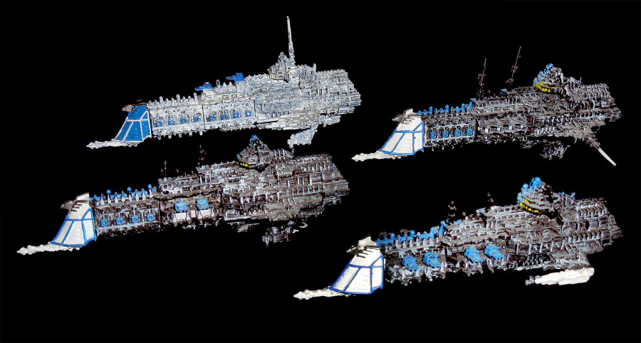 Dieses Farbschema drückte aber die tiefe Ruhe und Erhabenheit, die ein Space Marine ausstrahlen sollte, nicht wirklich aus. Daher werden nach und nach die Modelle überarbeitet und auf ein neues Design gebracht. Daher fällt die Streitmacht noch etwas klein aus, wächst aber stetig.