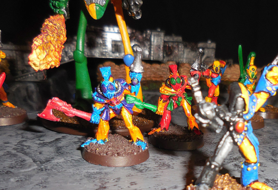 Wir verwenden hier nur die klassischen Harlequinmodelle (nicht den neuen Plastikkram). Zu der Zeit, als wir diese Streitmacht aufbauten, war es in der Tat recht schwer an solche Modelle heranzukommen. Ebay war damals ein enormer Fortschritt. Trotzdem scheinen klassische Harlequine noch immer etwas zu sein, was man vergleichsweise selten zu sehen bekommt. Die Modelle sind superdynamisch und erfordern keine Umbauten, trotzdem gibt es zumindest einen "Konvertiten" (bisher).